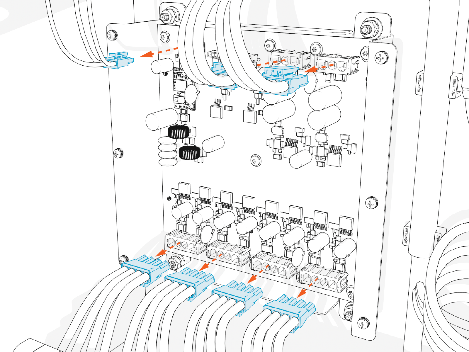 Disconnect cables (x7) from the front side of the board.