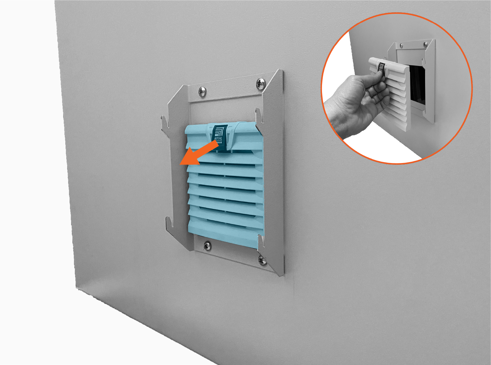 Grasp the tab on the filter vent and pull to remove the vent from the door.