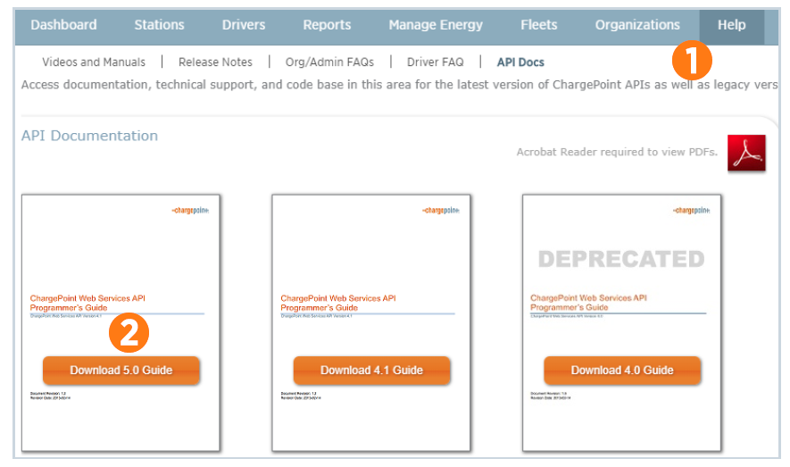 To download ChargePoint Platform's Web Services API Programmer’s Reference Guide and WSDL (Web Service Definition Language), complete the following steps: