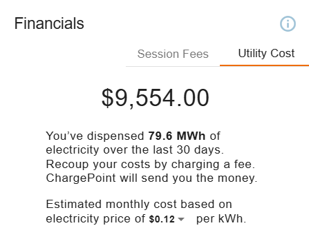 Utility Cost represents the estimated expense based on the total electricity dispensed from your charging stations.