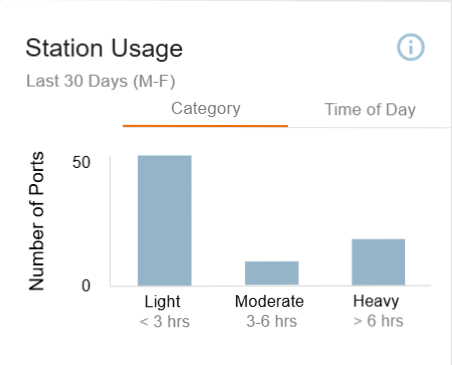 The Station Usage data chart displays the number of ports in usage from Monday to Friday over a span of 30 days.