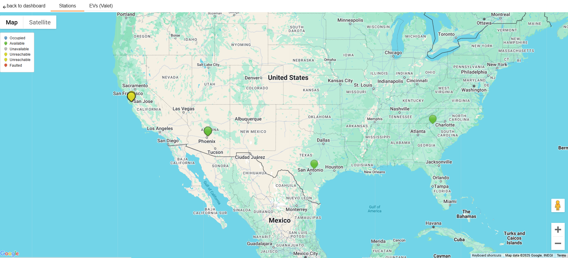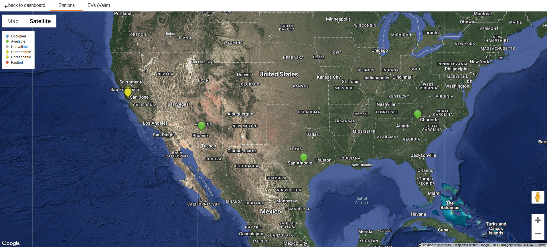 The Stations data chart provides a map view for the stations available across the NA region. Click on Map to access the Map view as well as the Satellite view to take stock of the stations available.