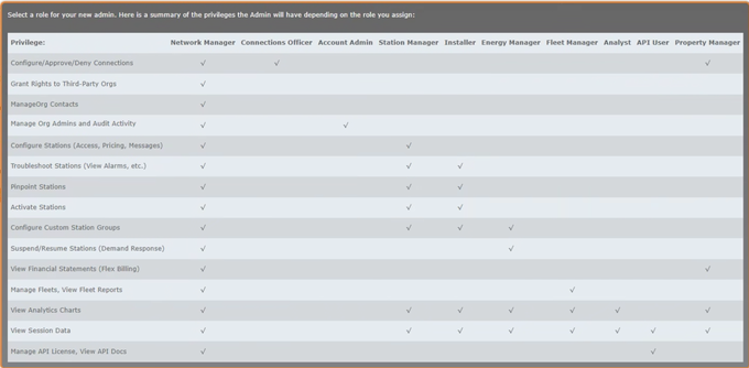 Once an admin role is created for a user in the ChargePoint Platform, the user will receive an email from notifications@chargepoint.com prompting them to set up their account and create a new login. For more information, see Set up an Account for the New Admin.